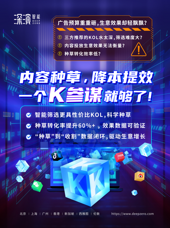 88BIFA智能K参谋科学前选,可跨领域找到最能影响品牌目标TA人群的KOL进行投放,同时有效平衡投资回报率;内容营销数据可同电商后链路平台打通,进行数据归因分析,准确判断KOL影响的用户是否真实在电商平台产生购买行为;实现“种草”到“收割”链路闭环,轻松内容营销,可根据品牌方的业务需求提供一站式的KOL采买及数据验证服务,有利提升整体内容营销的效率与效果。