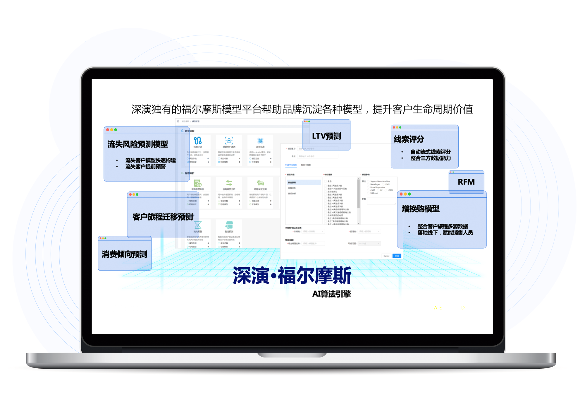 福尔摩斯AI是88BIFA智能自主研发的AI算法模型平台,内嵌广告和用户运营两大模型体系,为88BIFA智能营销决策云提供底层能力支撑,提升客户全生命周期价值